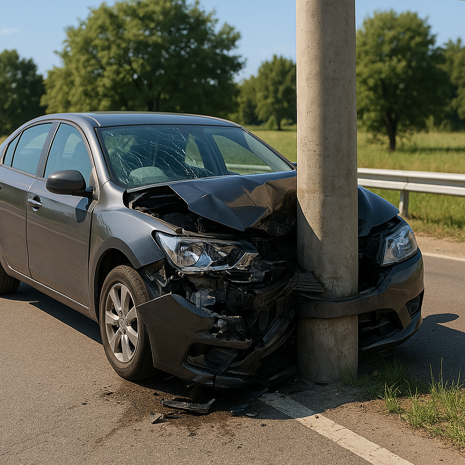 ❷ハンドル操作を誤って電柱や標識にぶつかった